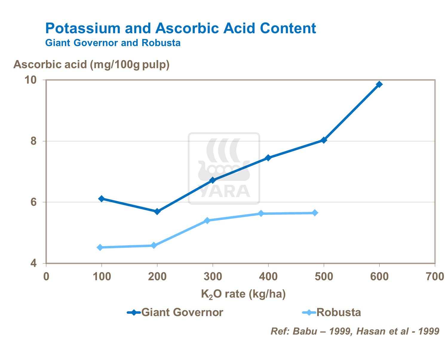 Potassium plays a key role in increasing the vitamin-C content of the fruit, significantly increasing the ascorbic acid content of the pulp.