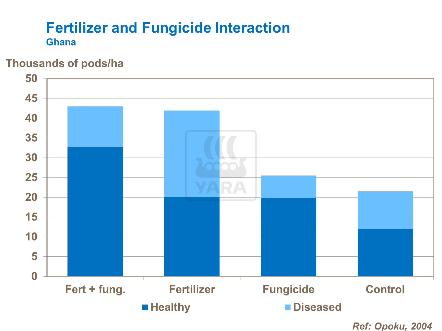 While the current recommendation is to remove and burn infected trees, there are indications from CIRAD research in Ghana and Ivory Coast that YaraLiva Nitrabor can reduce the impact of swollen shoot disease. Vascular Streak Dieback (VSD) is a major fungal problem in Indonesia. Currently, control is to cut the infected branch 30cm below the last visibly infected tissue and then fertilize to encourage new growth.