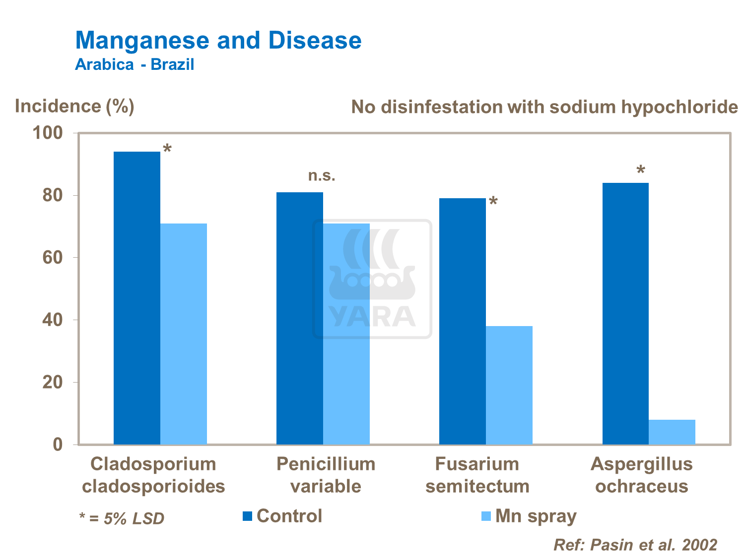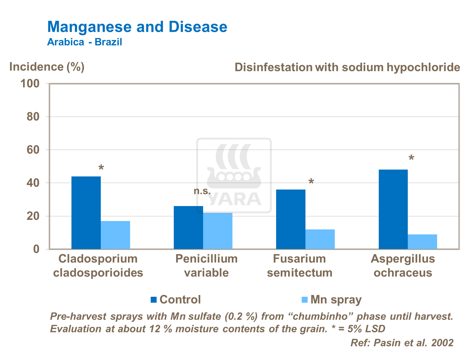 As with other nutrients, maintaining a good supply of manganese maintains healthy growth, minimizing the effects of fungal attack and disease on the processed bean.