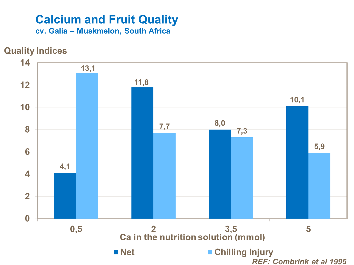 By increasing calcium in the fruit growers can ensure better net development and reduced chilling damage (cv. Galia - Muskmelon, South Africa).