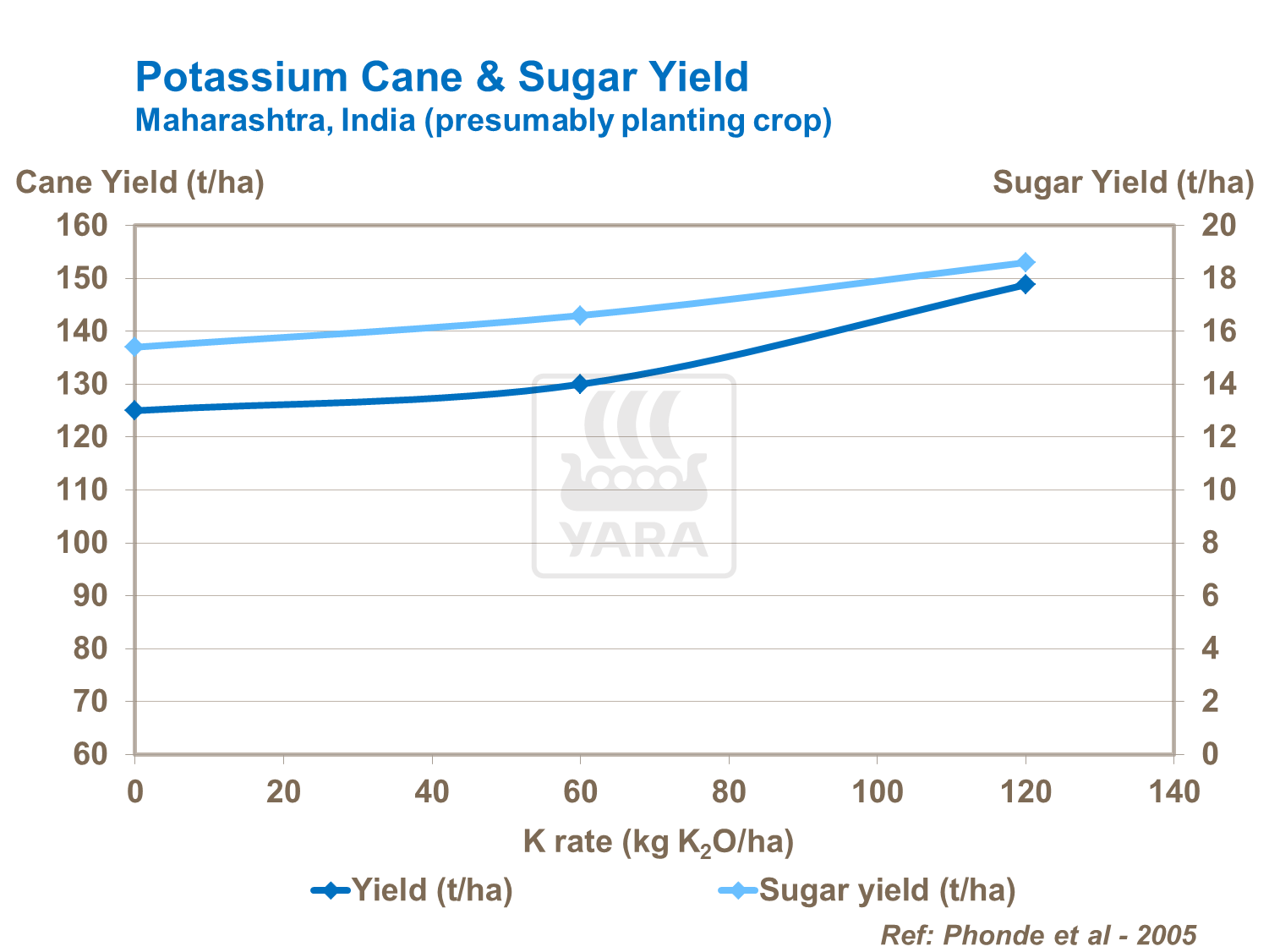 Phosphorus has a direct effect on sugar yield, not only through increasing physical yield, but also by increasing sucrose content in the harvested cane. It can also result in poor clarity in cane juice.