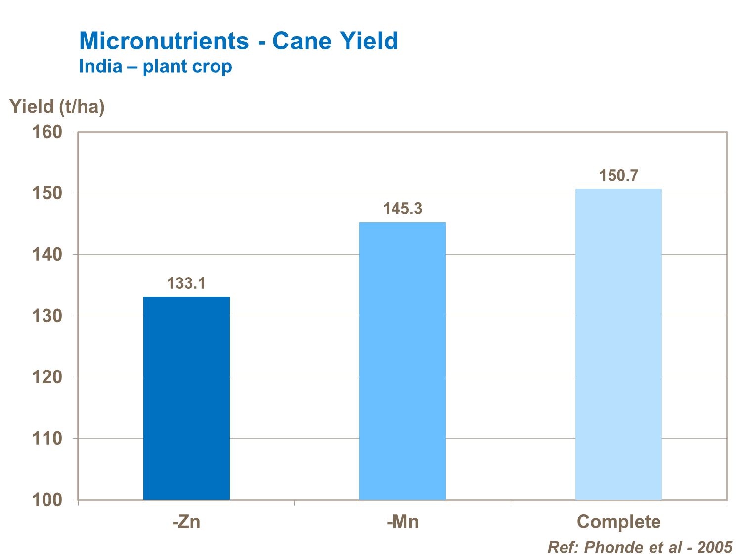 There are numerous examples of positive responses in terms of growth and subsequent cane and sugar yield in the scientific literature. Figures 46, 47 and 48 highlight some of this research and indicate responses where micronutrients are in short supply.