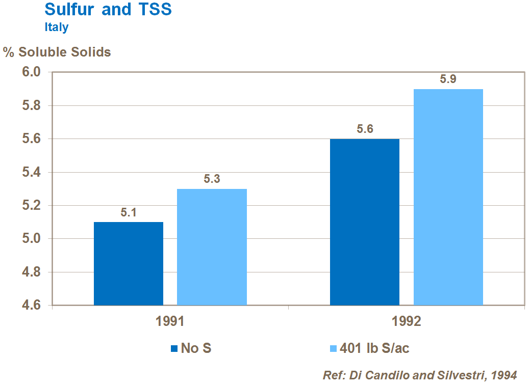 High rates of nitrate applied as calcium nitrate increase levels of total soluble solids as measured by °Brix.