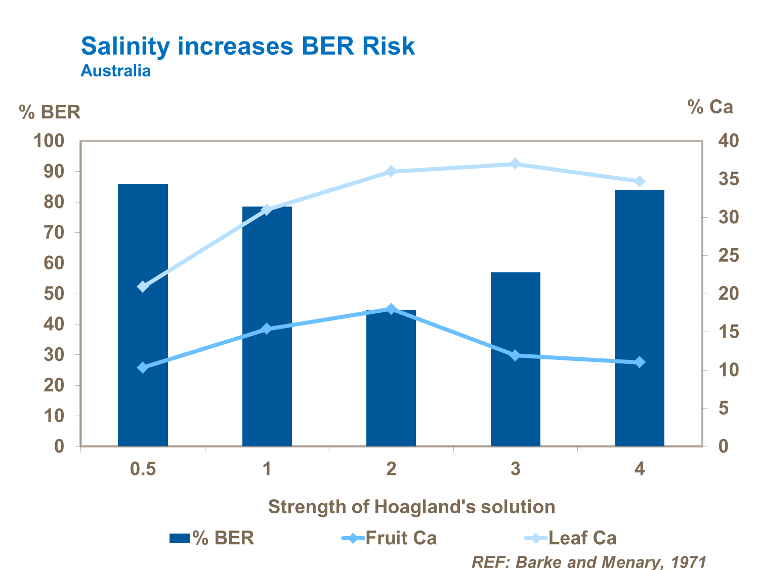As a result of anionic ammonium as the main source of nitrogen, significantly increases the incidence of BER. The best way of ensuring good calcium supply is to use calcium nitrate as the calcium source.