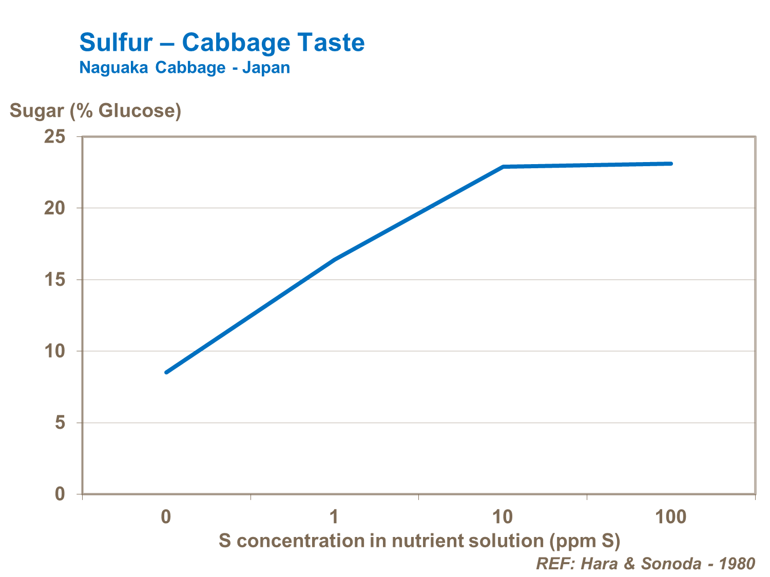 Sulfur is needed in brassicas to provide sweeter cabbages – with improved processing characteristics and better health providing properties. Good sulfur nutrition leads to sweeter cabbages.