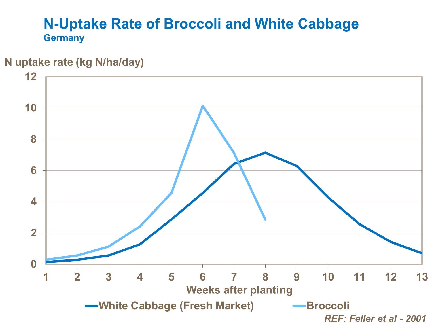 Fast growing types (e.g. cauliflower and broccoli) require a high nitrogen supply as they have high nitrogen uptake rates and a high nitrogen requirement, particularly during early growth