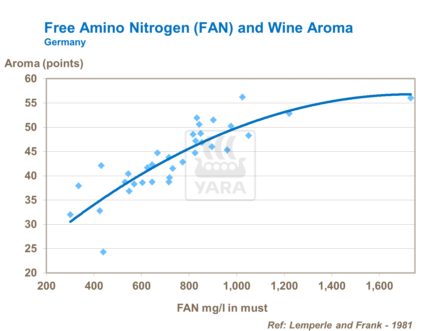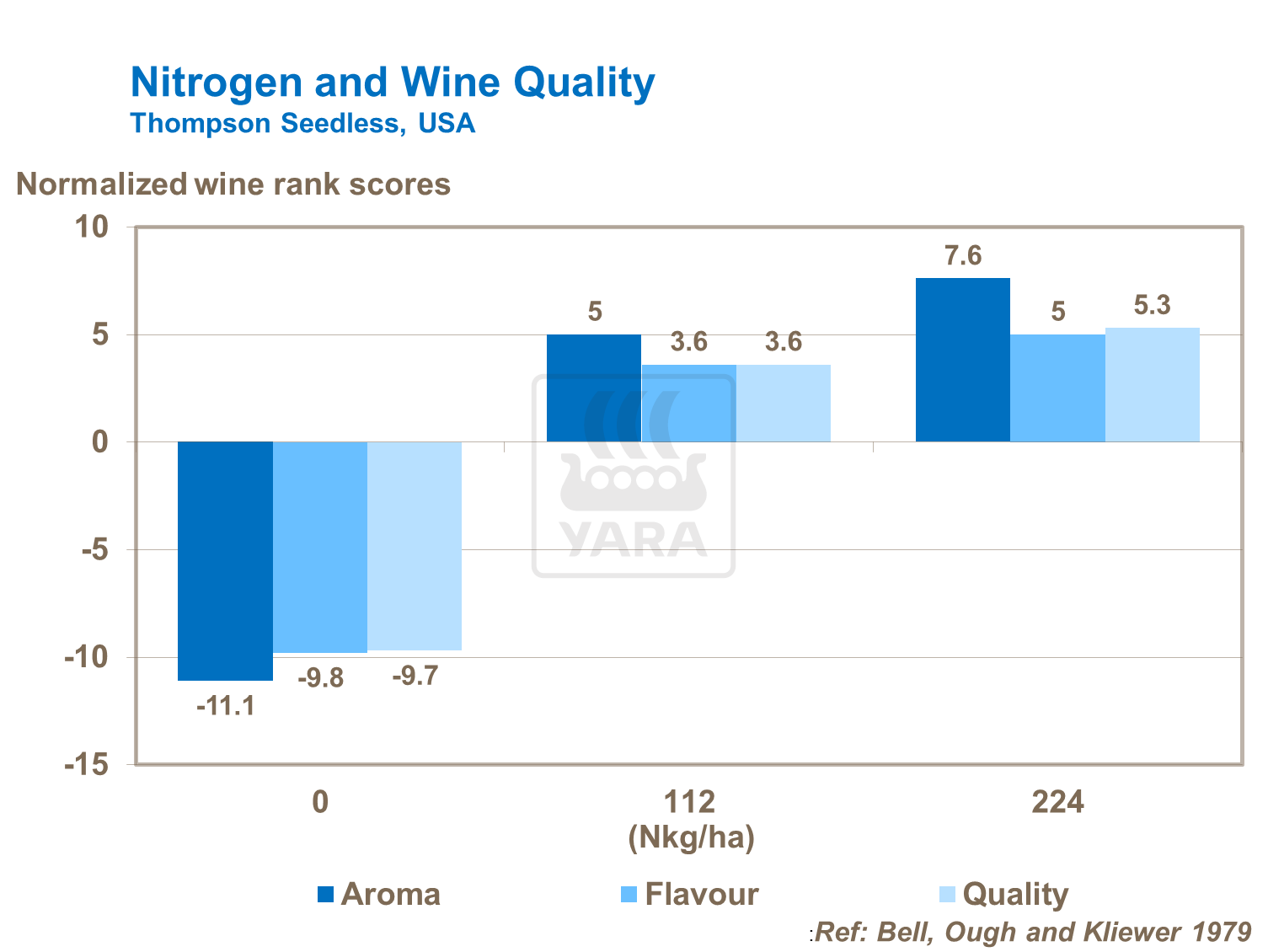 Nitrogen fertilization can positively influence aroma, flavour and wine quality scores (Figure 25). The right form of nitrogen is particularly important in this; trials show that free amino acid nitrogen can also increase wine aroma.