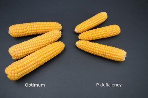Some maize hybrids show reddish leaves in younger development stages although P supply is sufficient.