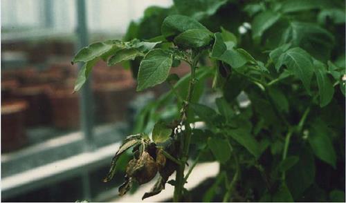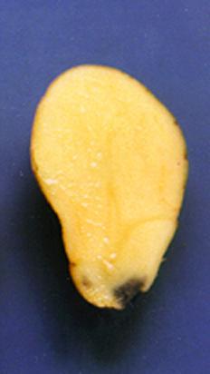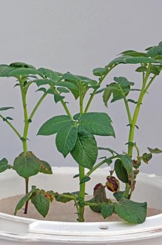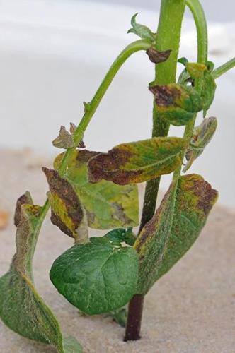 Potassium deficient tubers show black spots. When cut, they blacken rapidly.